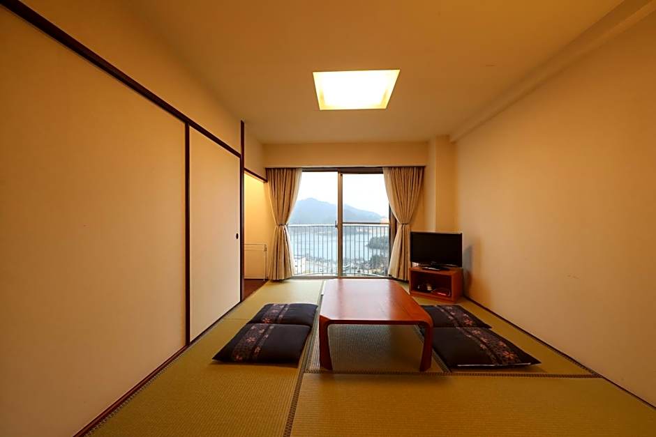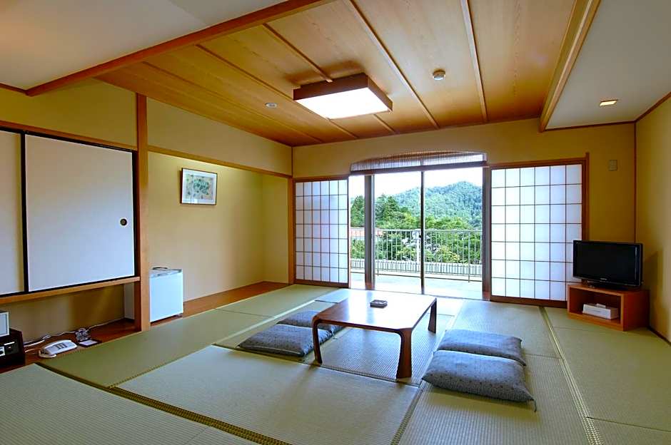Features tatami (woven-straw) flooring and traditional futon bedding. This room features a balcony, air conditioning and view.